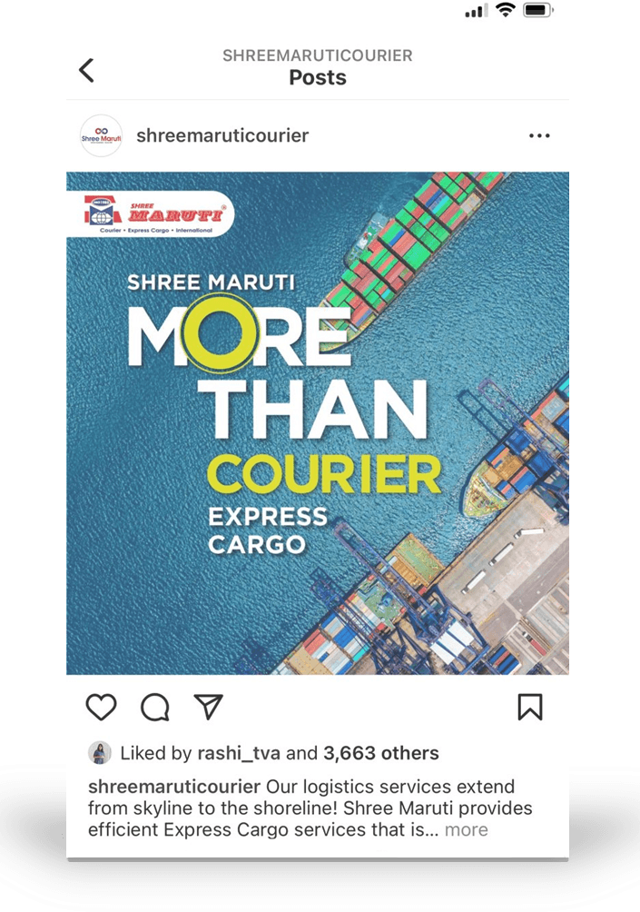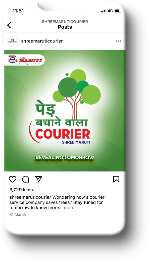 Zebra took up current issues and smartly connected it with the term “Delivery”. This was done to shift the perception of the audience and help them associate Shree Maruti with a full-fledged delivery service that provides you with various options like International shipping, fast track delivery service, cargo express and e-commerce delivery services. To support the same, Zebra planned and launched the campaign "More than courier" and highlighted other services to position Maruti courier as a delivery service.